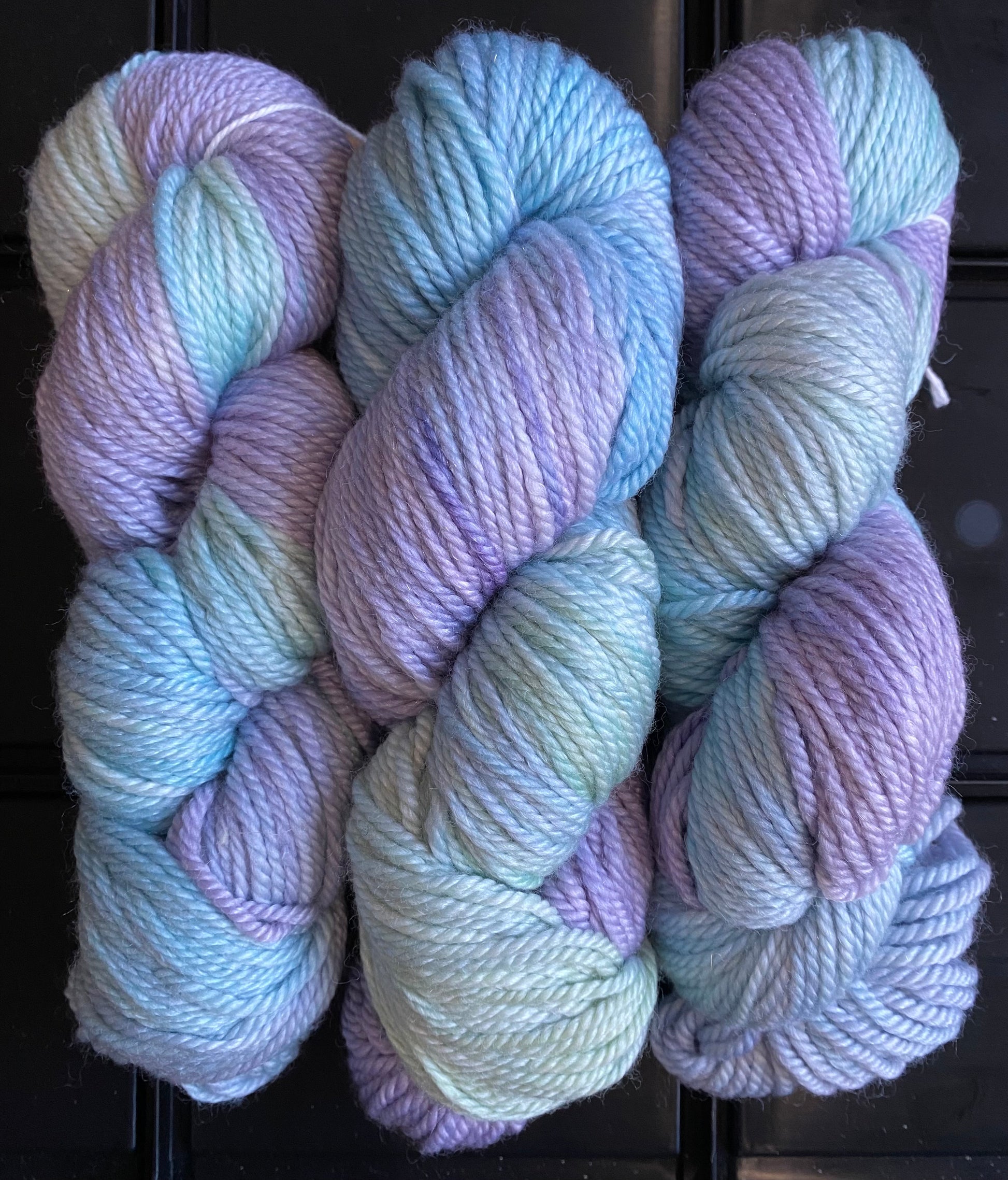 These skeins are hand-dyed on a limited edition Bamboo Aran base, milled in Italy with a 70/30 mix of fine superwash merino and lyocell. Each skein is 100 grams and 120 meters (131 yards).