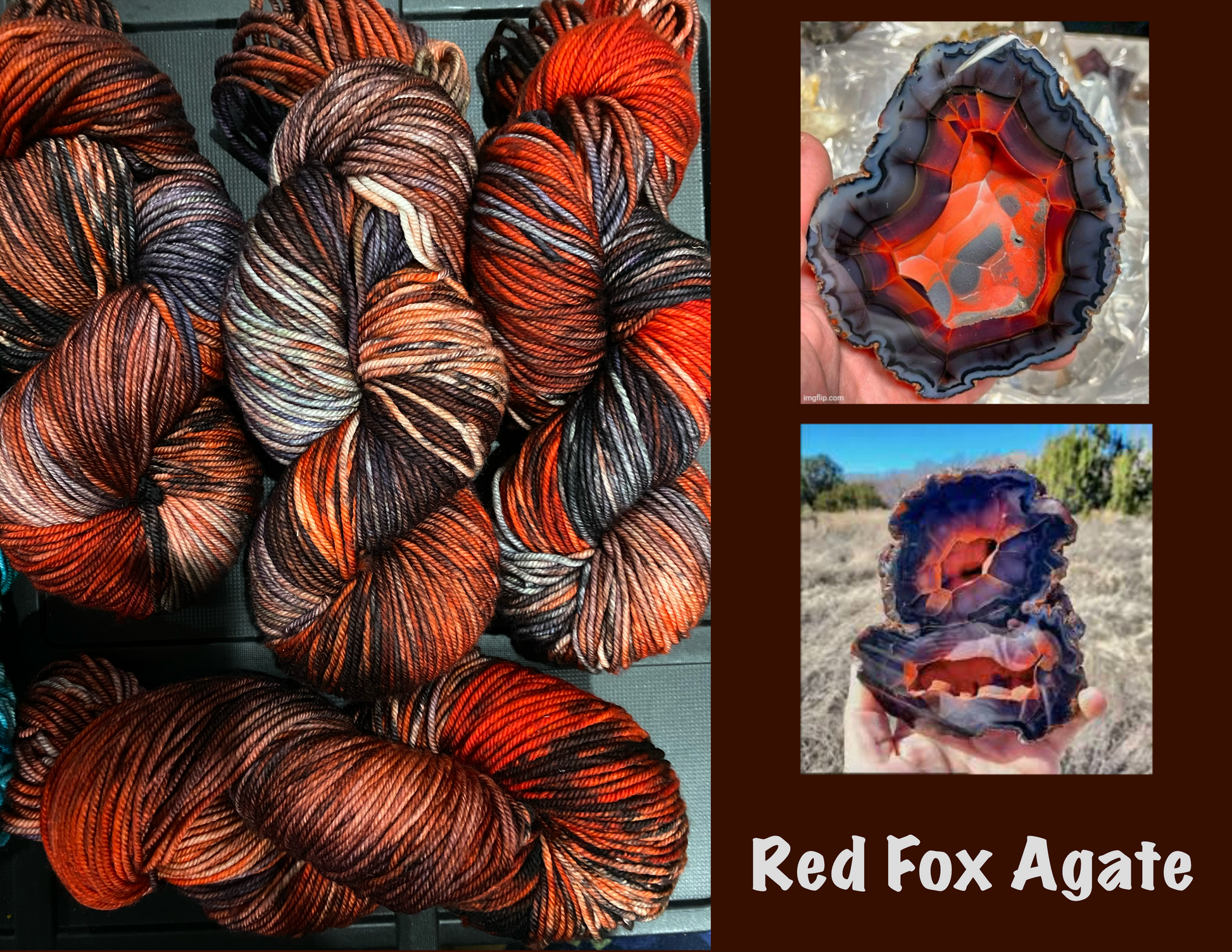 Red Fox Agate is a multi-tonal colorway that incorporates bright red, black and smoky grey.